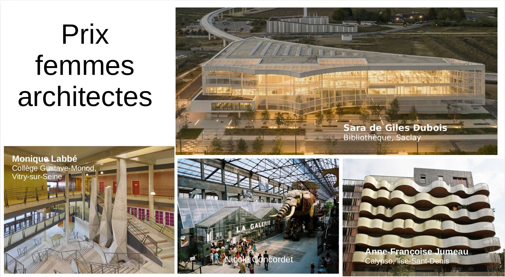 Une introduction à cette journée est réalisée par Stéphanie Bouysse Mesnage, historienne de l’art et du genre, maîtresse de conférence à l’École nationale supérieur d’Architecture de Nantes, sur la place des femmes dans l’architecture (hier, aujourd’hui et demain).